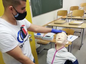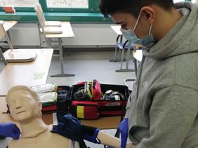 Extra für die Teilnehmenden des Schulsanitätskurses aus der Realschule haben die Malteser am 12.12. einen Abschlusstag organisiert, an dem die Prüfungen stattfanden. Besonders wurde aufgrund der Corona-Pandemie darauf geachtet, dass der Tag unter minimalem Personalaufwand stattfand. Alle praktischen Übungen wurden kontaktarm umgestaltet und der Abstand und die Maskenpflicht eingehalten, auch wenn dies die Prüfung natürlich veränderte. So wurden alle Übungen, bei denen dies auf eine sinnvolle Art möglich war, mit einer Demonstration der Erste-Hilfe-Maßnahme an sich selbst oder an einer Wiederbelebungspuppe dargestellt.